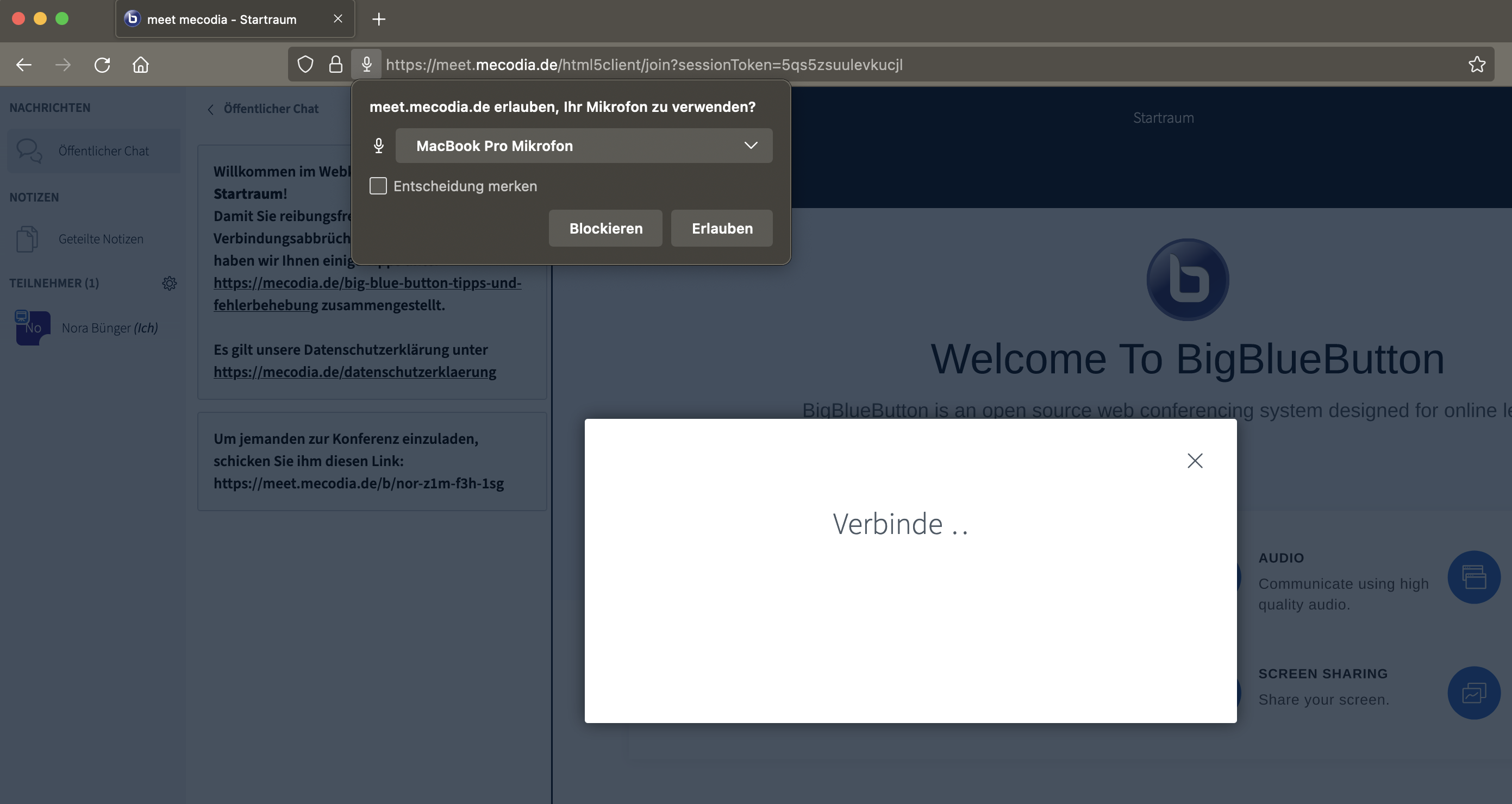 Bedenken Sie, dass die Berechtigungen in manchen Situationen erforderlich sind. Wenn Ihr Kind ein Online-Bildungsangebot nutzt (z.B. Homeschooling oder Online-Workshops), braucht der Browser die Berechtigungen, um auf das Mikrofon oder die Kamera zugreifen zu können. Wenn Sie die Berechtigungen im Browser deaktivieren, können Sie dennoch einzelnen Seiten den Zugriff freigeben.