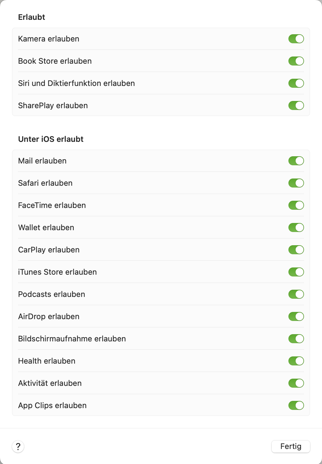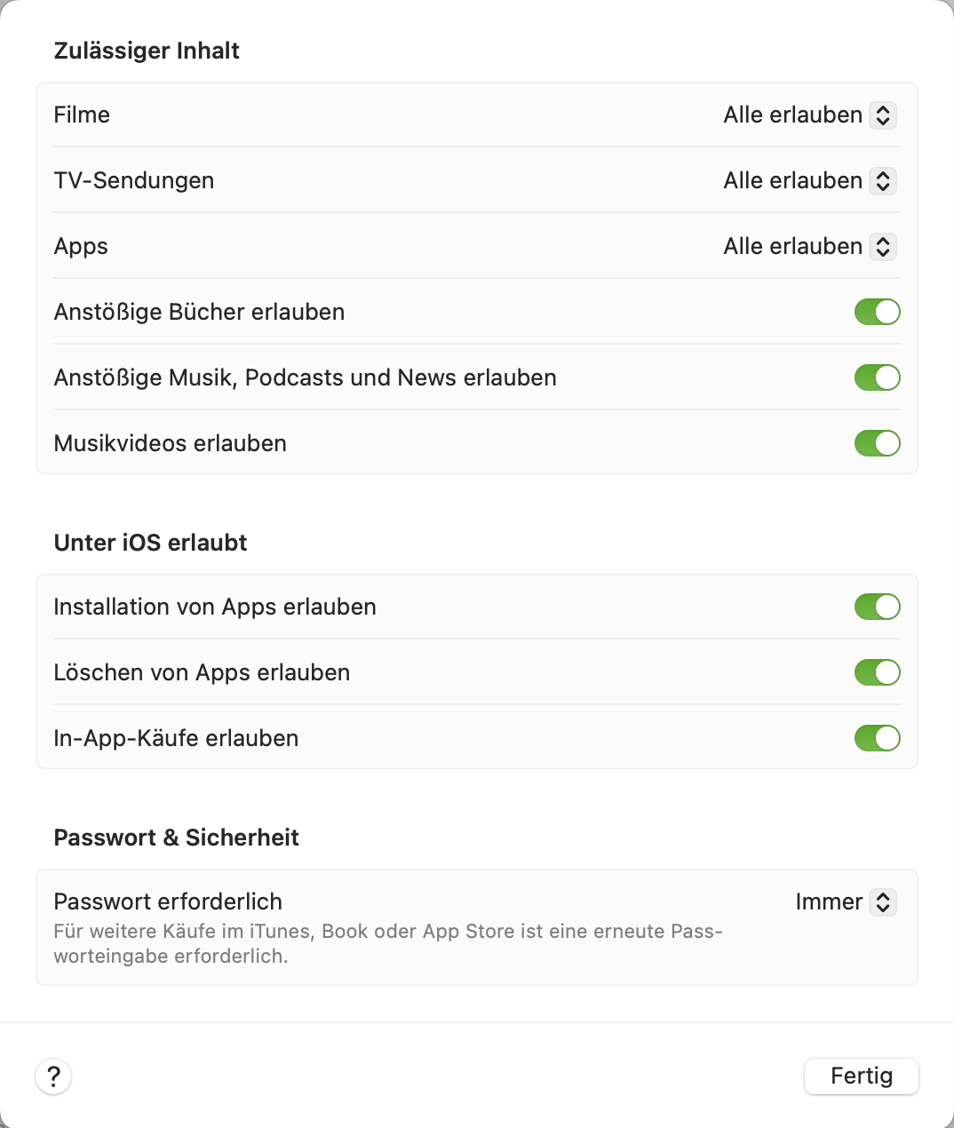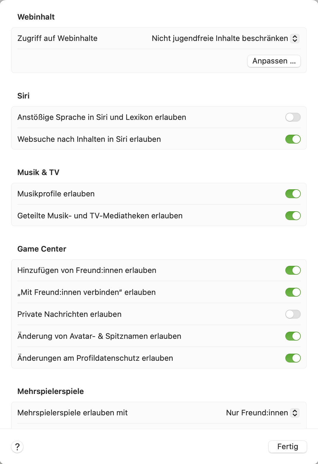 Die Einstellungen im Bereich Einstellungsbeschränkungen betreffen nur iOS-Geräte. Wenn Sie Einstellungen für ein iOS-Gerät Ihres Kindes vornehmen wollen, empfehlen wir stattdessen unsere ausführliche Anleitung für iOS-Geräte.