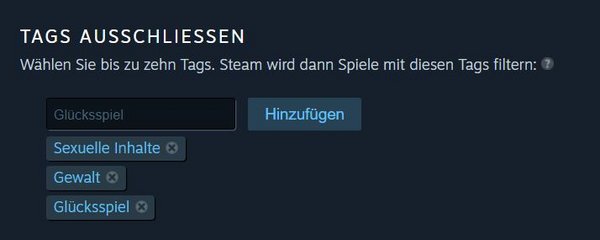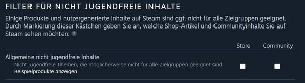 Bei Steam muss man 13 Jahre alt sein. Für Kinder von 13 bis 14 Jahren sind diese Einstellungen gut:
