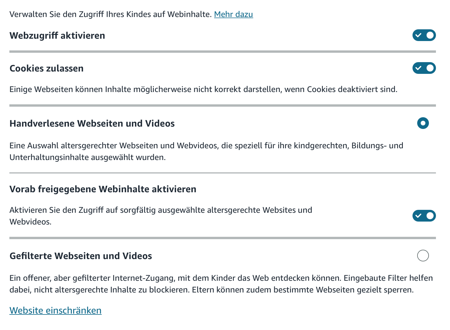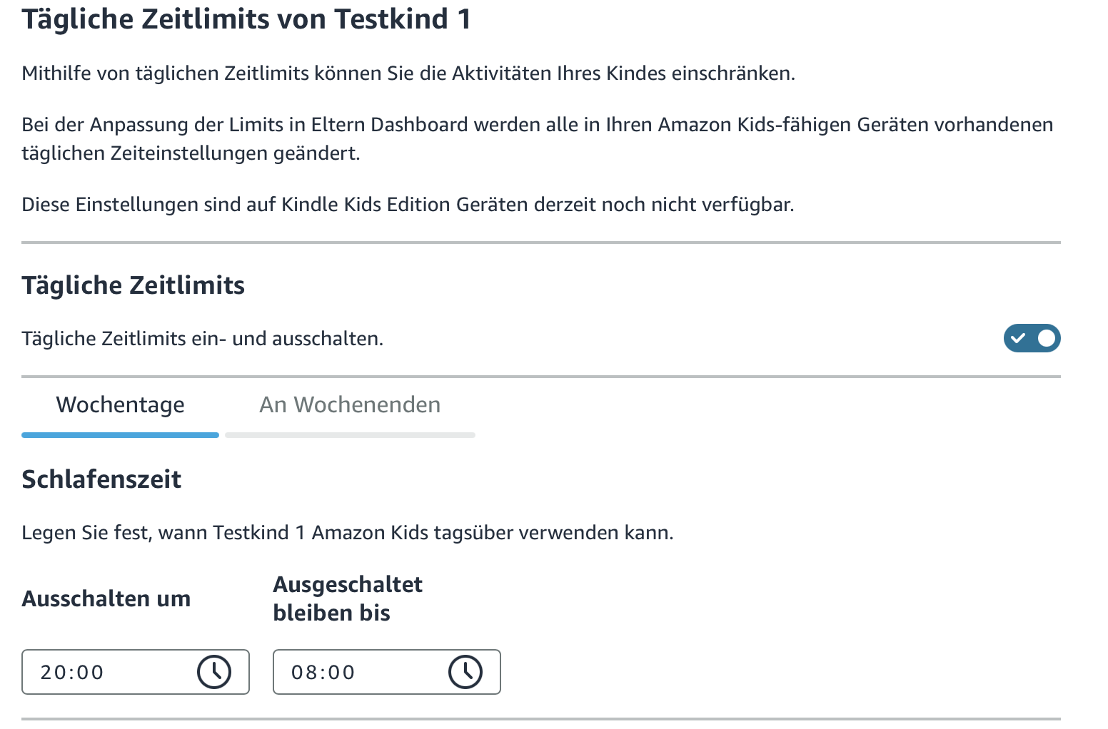 Achtung: Benutzen Sie Amazon Kids auch auf anderen Geräten? Die Einstellungen gelten dann für alle Geräte.