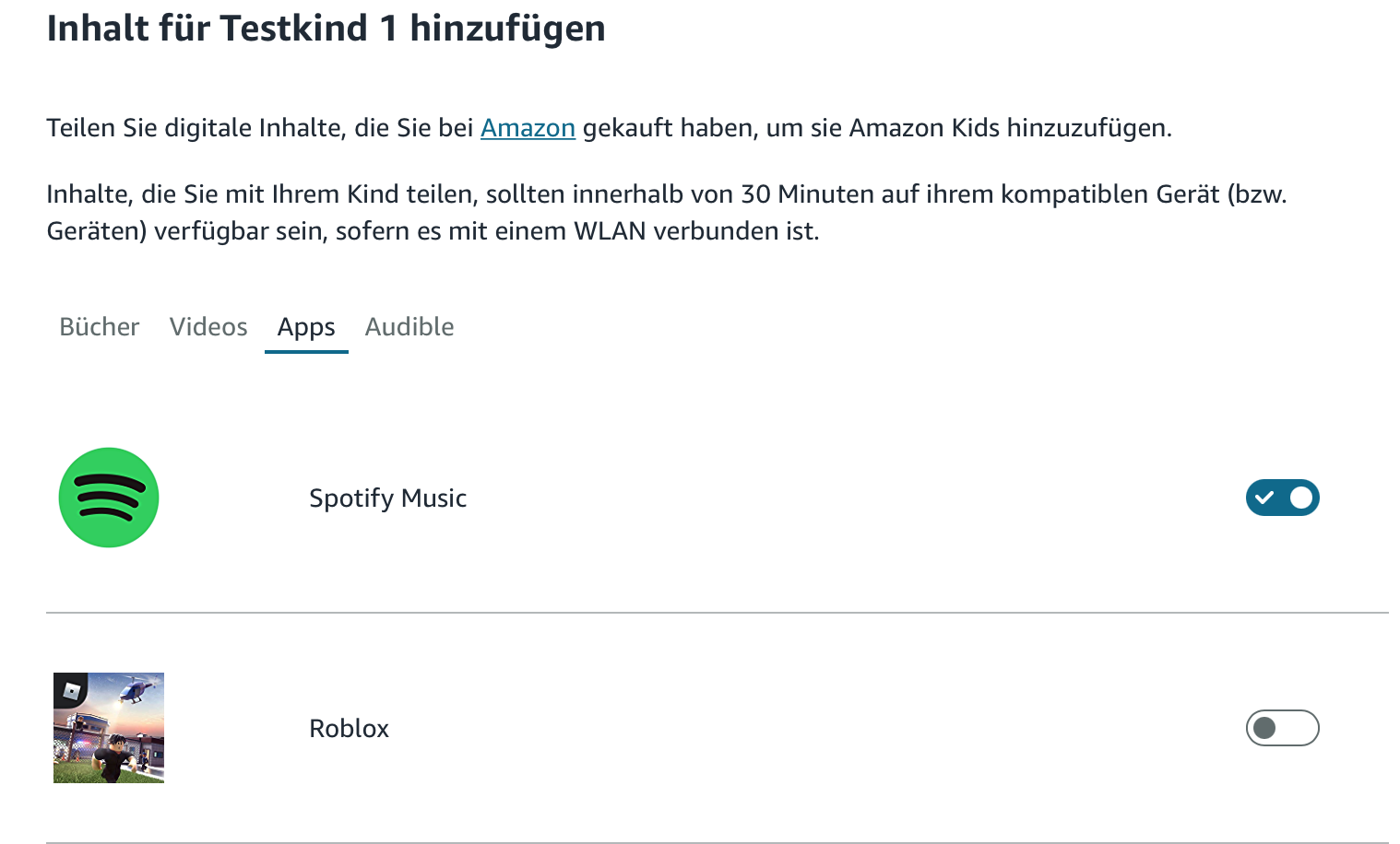 Vielleicht haben Sie Bücher über Amazon gekauft. Vielleicht haben Sie Apps über Amazon gekauft. Ihr Kind kann das benutzen.