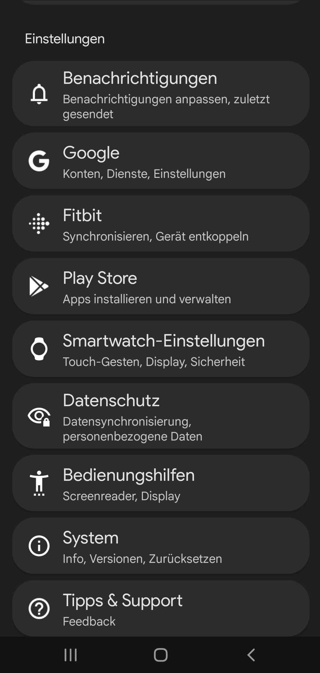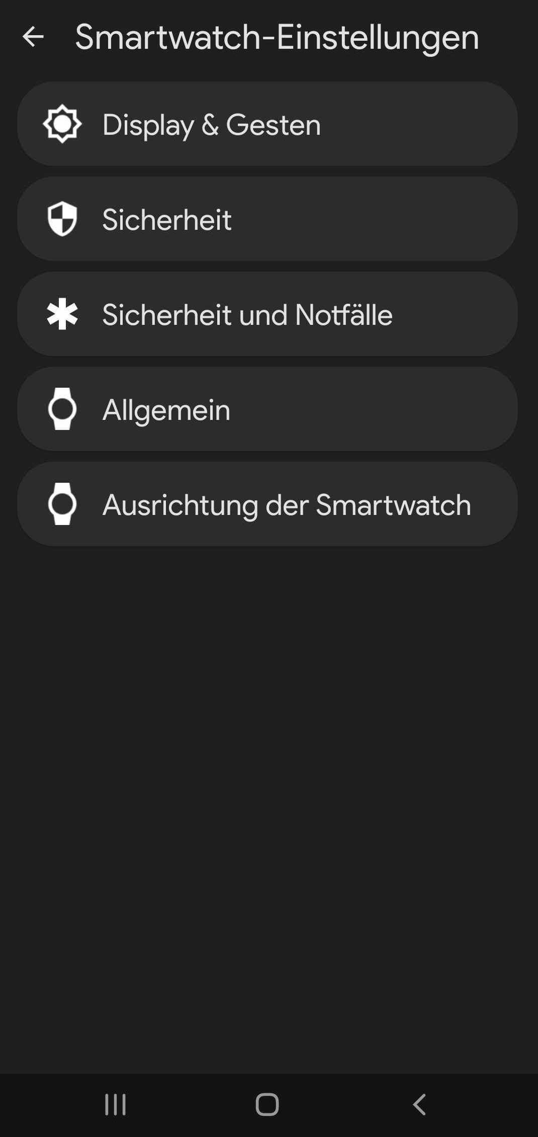 Klicken Sie: Smartwatch-Einstellungen Hier sehen Sie viele Unterpunkte.